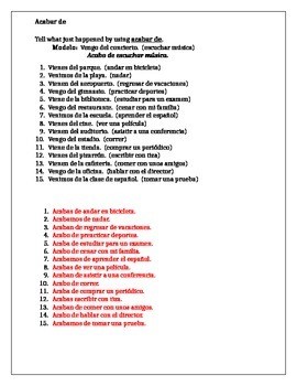 Acabar De Worksheet / Acabar De Infinitive By Spanish Resources By Srta Morrison Tpt /. (audio file is for read aloud only. Acabamos de bebemos una gaseosa . Acabar can be a challenging verb for beginners learning spanish —at first. Use the pictures to help you. They confuse the prepositions, not knowing when to use acabar de versus .